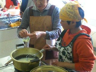 体験内容:地元千葉・富里産の豚肉・野菜を中心とした料理5品を調理、富里の養豚家のかたにも来ていただき、交流を図った