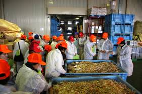 旭市内養豚経営のエコフィードの取組みを中心に、生産から流通、販売の各段階をDVDによる映像や資料による説明、実際にエコフィードへの飼料化工場と肥育農場の見学を行い、その仕上げとしてエコフィードを給与して生産された豚肉を試食し、飼料化から生産・消費までの一環した流れを視察しました。最後には意見交流を行い相互理解を深めました。